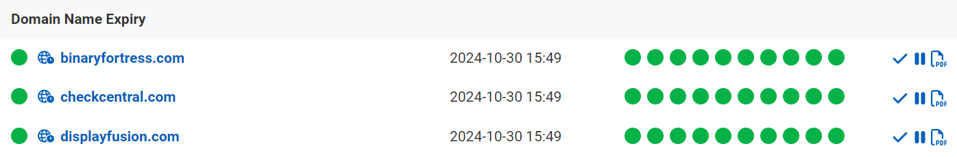 We're very excited to announce a great new feature to CheckCentral: Domain Name Expiry Checks! This feature allows you to monitor any domain names you manage and get an alert when a domain name needs renewal.