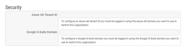 If you logout, then use the "Login with Microsoft" button, you can login using your Azure AD credentials. Once you've done that, you'll be able to go to the org settings page again and paste in your tenant ID. After that, the org will only allow users logged in with that tenant ID to access it.
