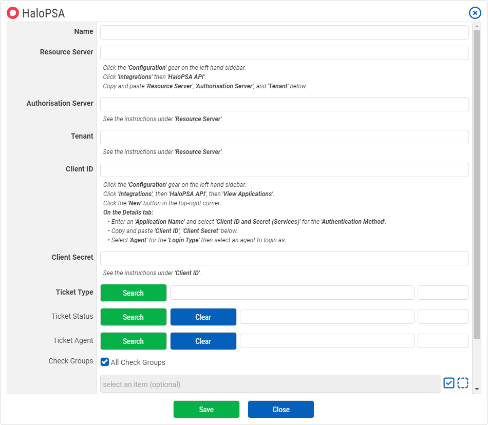 We're pleased to announce that we've added HaloPSA as an external ticketing system for your CheckCentral notifications! To get started with it, login to your CheckCentral dashboard, then click Notifications > External Ticketing Systems. From there you can add it as a new channel and detailed instructions are in the configuration window.