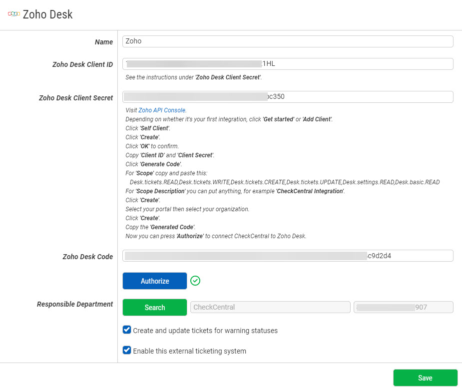 Channels/Ticketing Systems on Check Edit Page