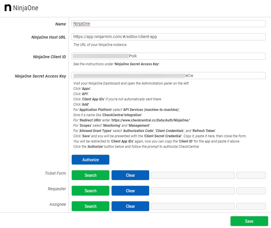 Channels/Ticketing Systems on Check Edit Page